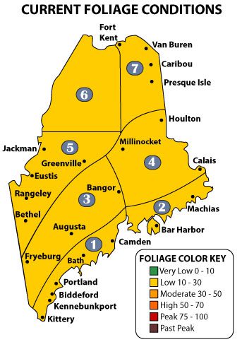 “Pockets of color are emerging throughout all seven zones, but overall the state is just about 10 percent to 30 percent toward peak. With the upcoming forecast calling for rain over the next several days, we could start to see a rapid color change throughout northern and central Maine. The rest of the state is still tracking a bit behind with peak conditions possibly arriving mid to late October,” according to Gale Ross, fall foliage coordinator.